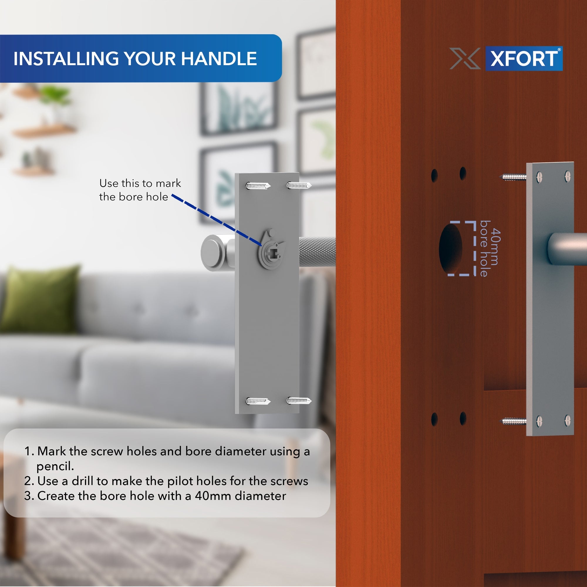Unscrew and remove the existing door handle from both sides of the door. Ensure the door is clean and free of any debris from the old handle.