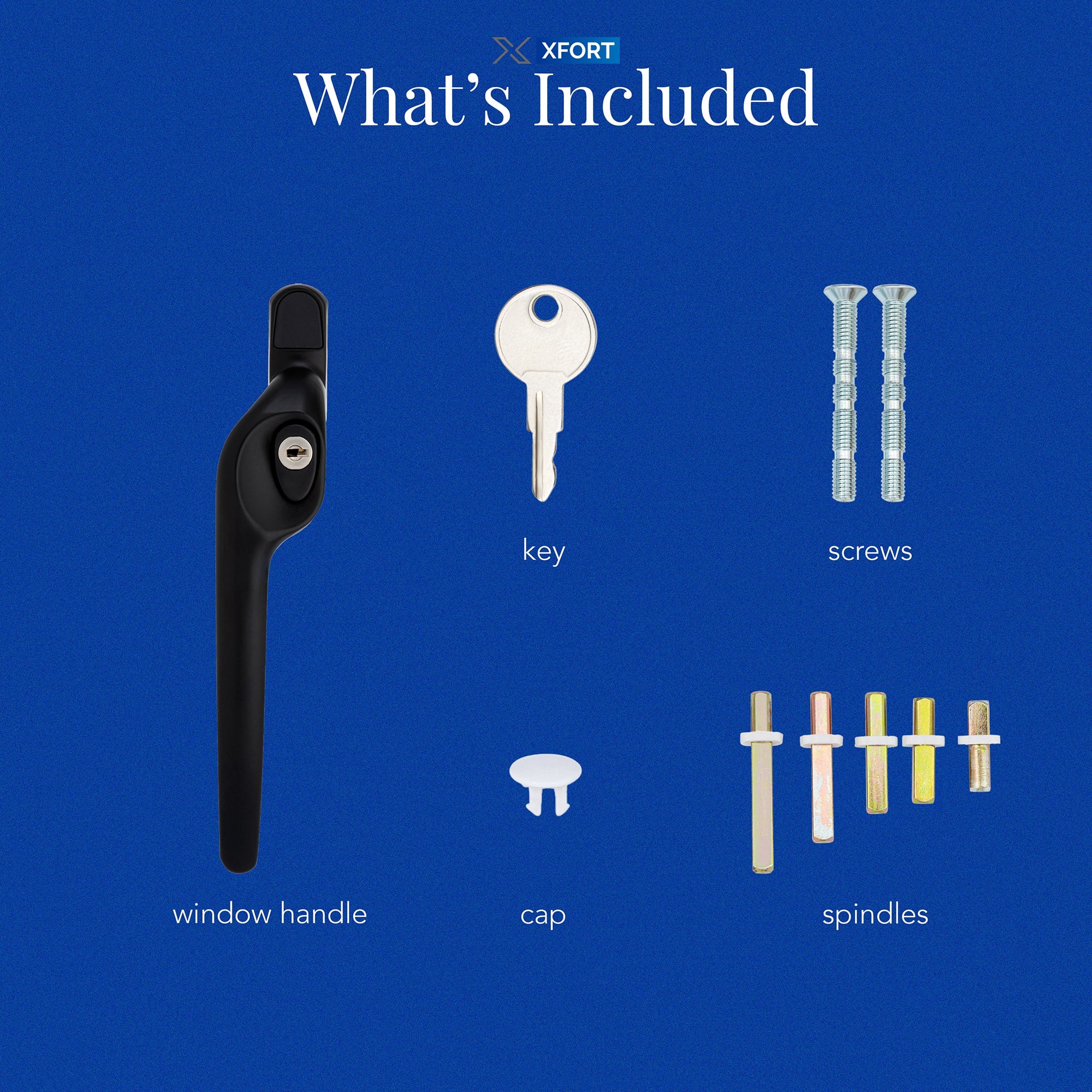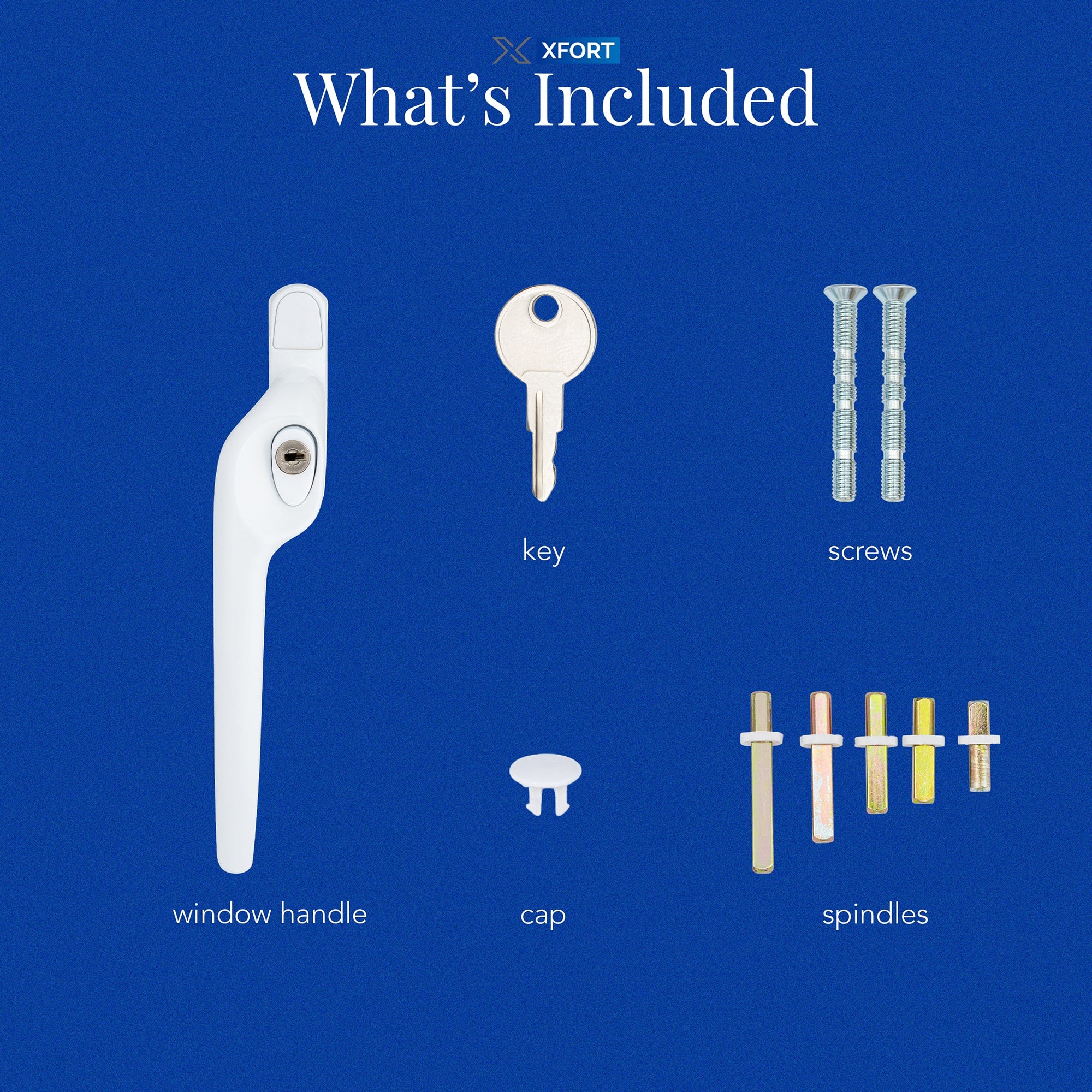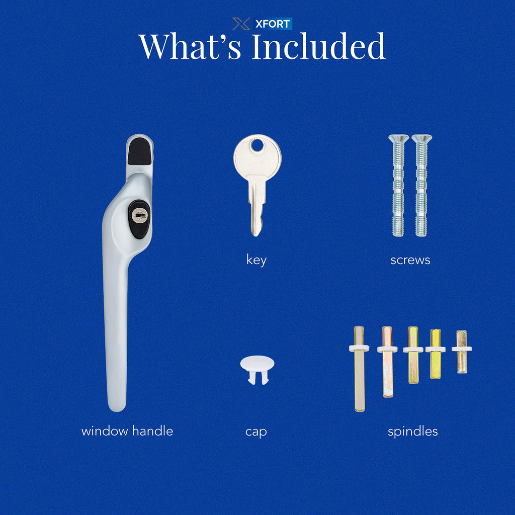 FITTINGS: The UPVC window handle comes with multiple spindle lengths (10mm, 15mm, 20mm, 30mm and 40mm), screw hole covers, adjustable screws, and a keyhole cover for a neat finish.