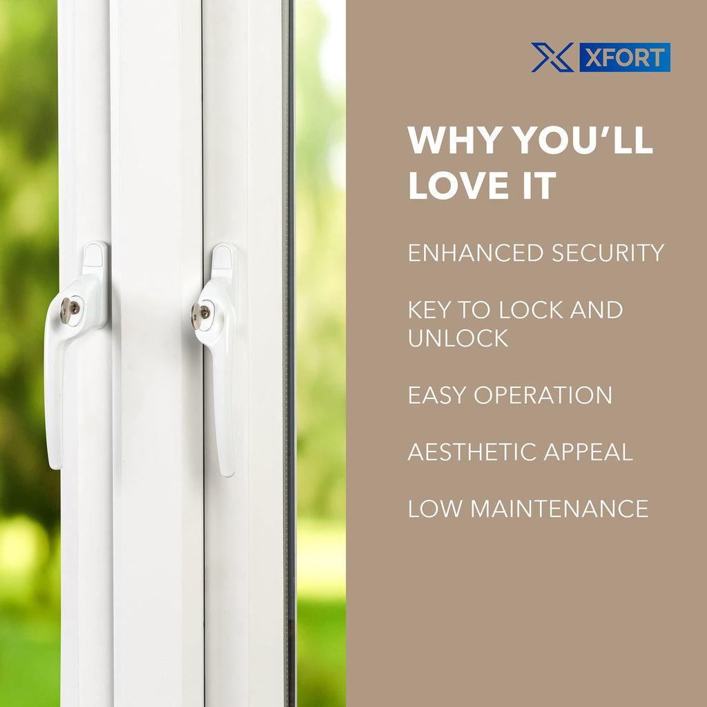 FUNCTION: This cranked locking window handle enhances child safety, preventing children from opening windows without the key.