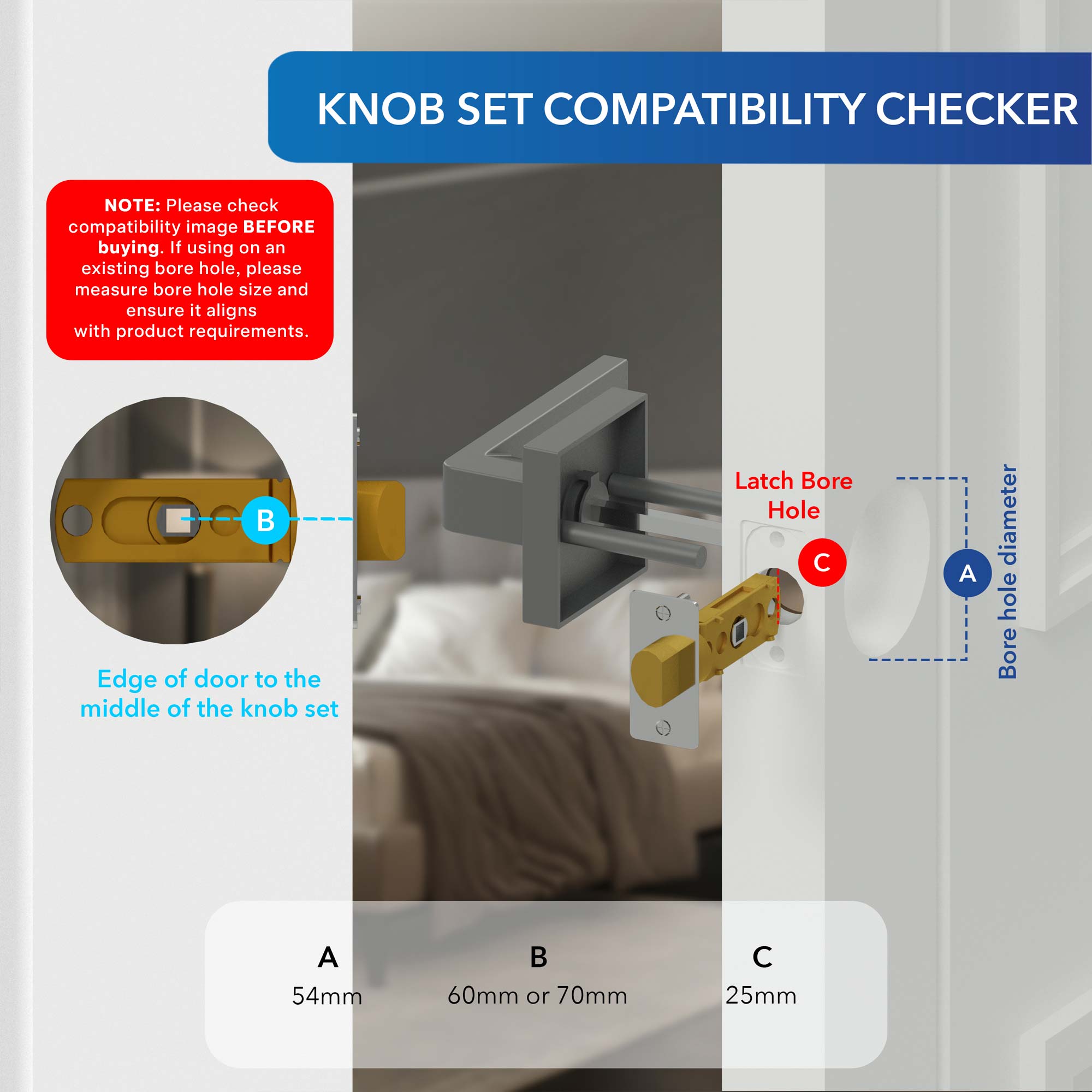 Applications: Ideal for internal wooden doors (35-50mm thick), it's versatile for bedrooms, offices, or any internal door requiring security, offering peace of mind and convenience.