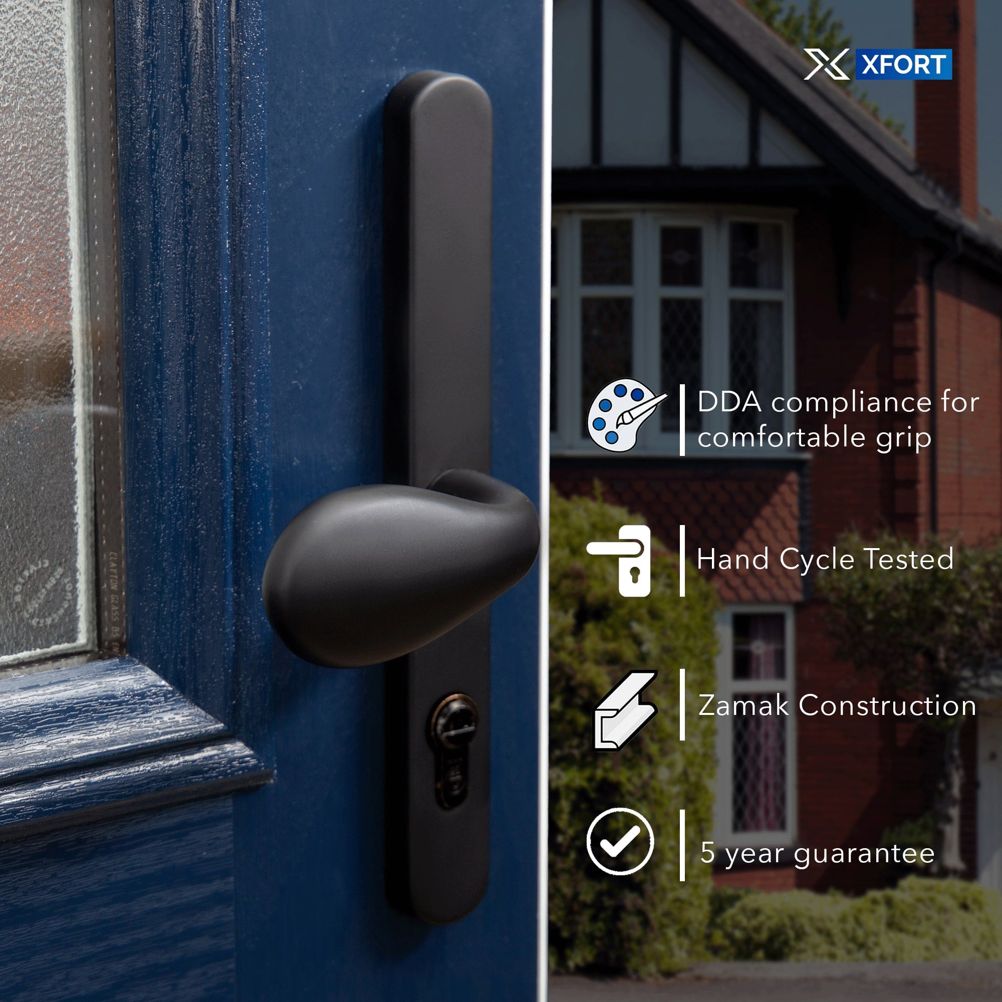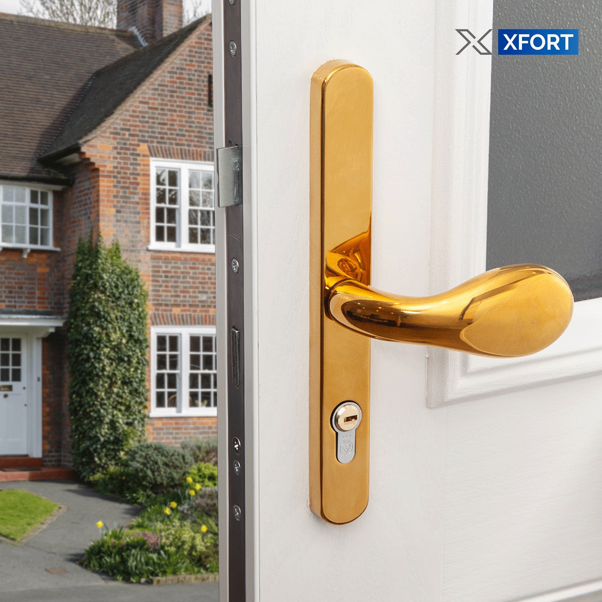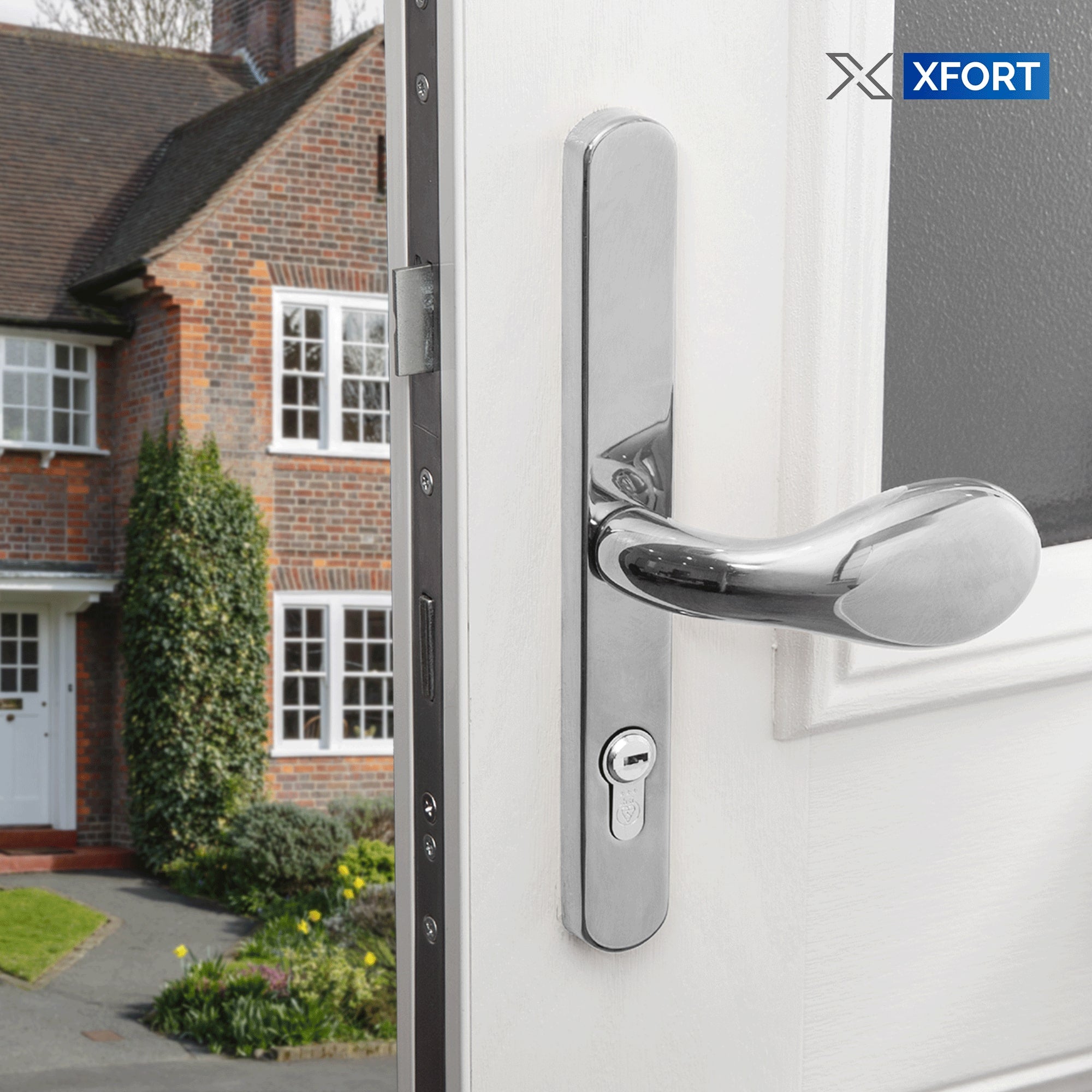 Function: The XFORT Uros Lever/Pad door handle enhances security by preventing outside entry without the key.
