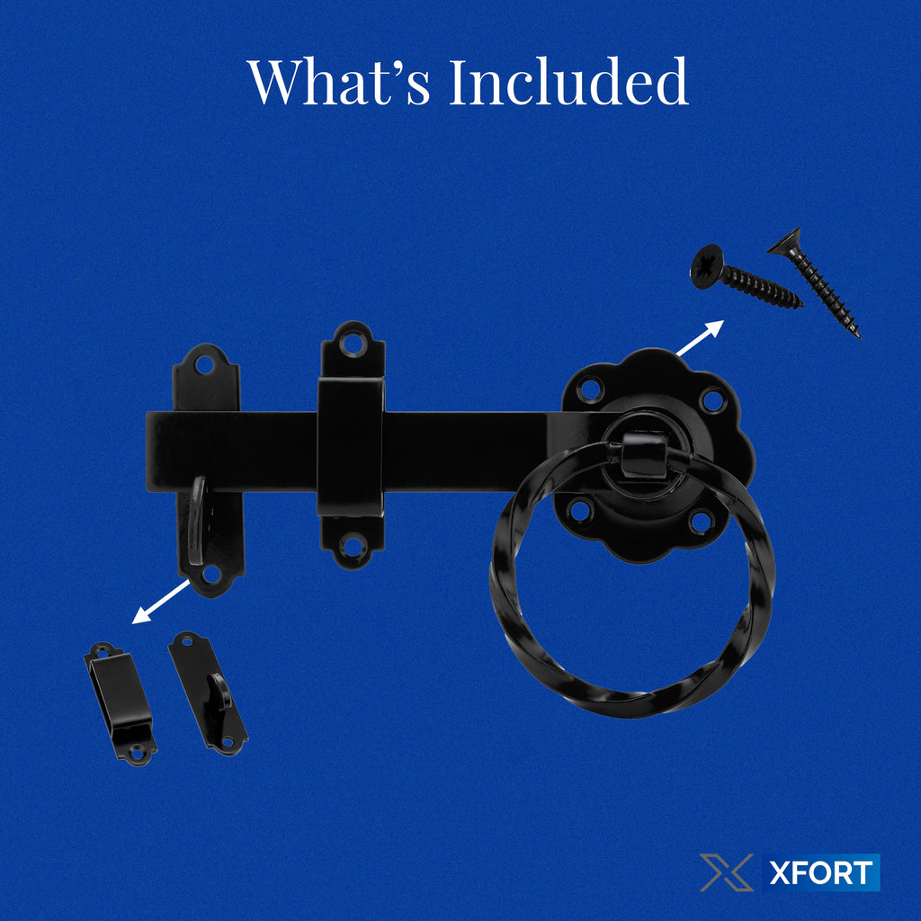FUNCIÓN: Cierre de forma segura su puerta con facilidad utilizando el pestillo para puerta XFORT. Levante e incline los elaborados anillos de ambos lados para liberar el pestillo, lo que permite una apertura sin esfuerzo desde adentro o desde afuera.
