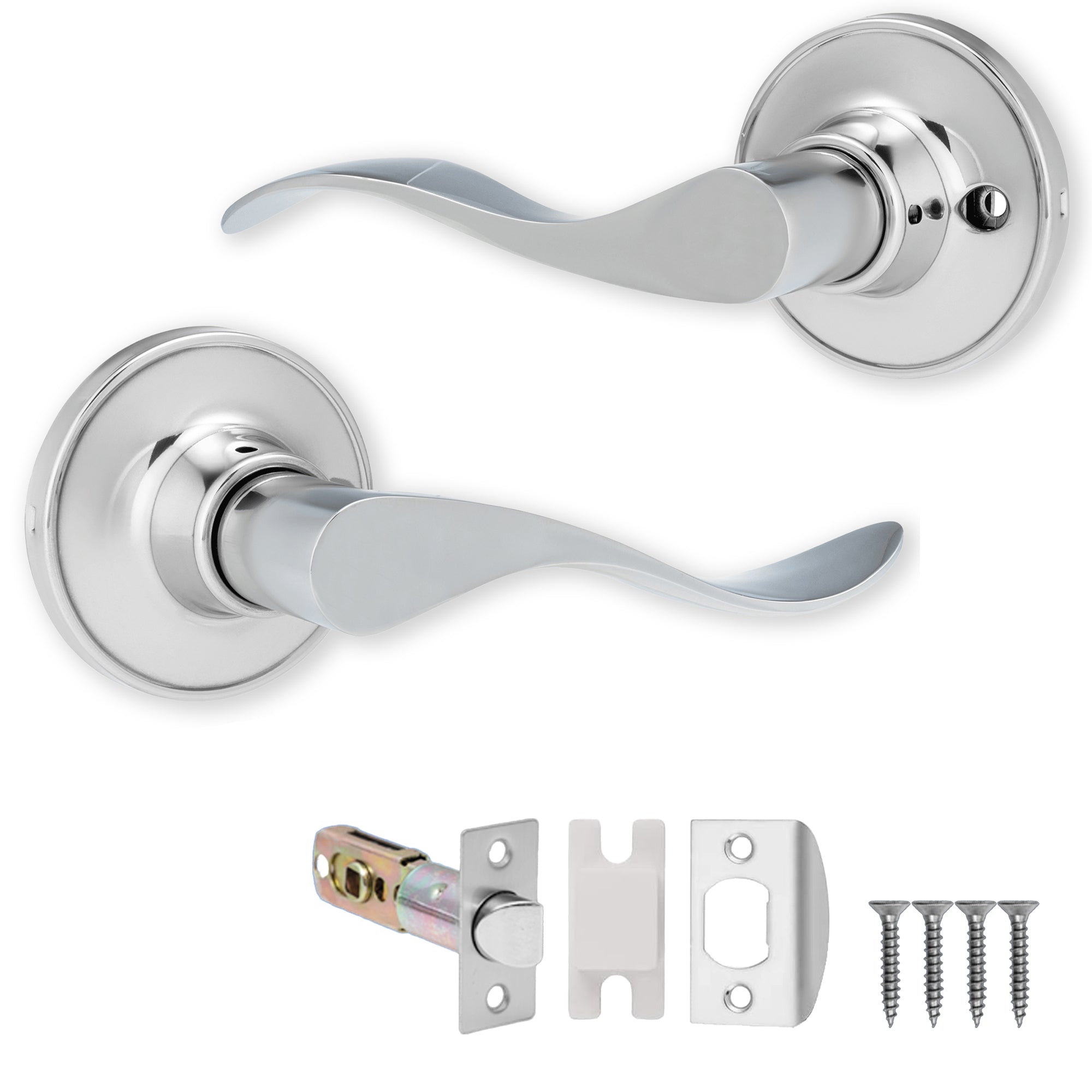 Accesorios: El juego de perilla de paso incluye todos los accesorios y herrajes necesarios para una fácil instalación, como tornillos del mismo color y un pestillo tubular.
