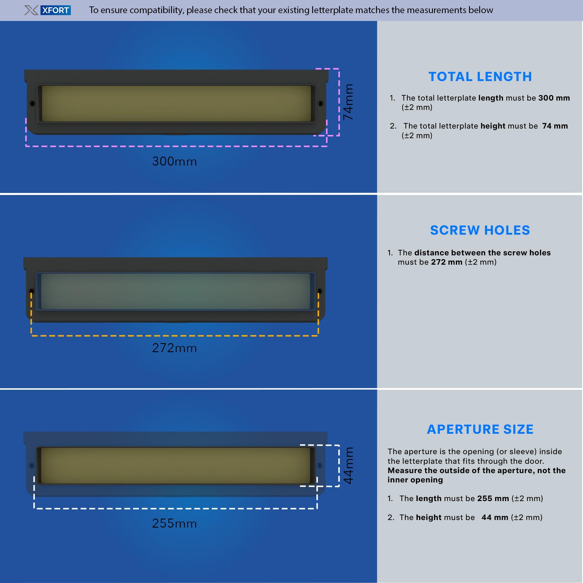 APPLICATIONS : les boîtes aux lettres XFORT MailPlate sont applicables pour une utilisation sur les portes d'entrée en PVC, composites et en bois.