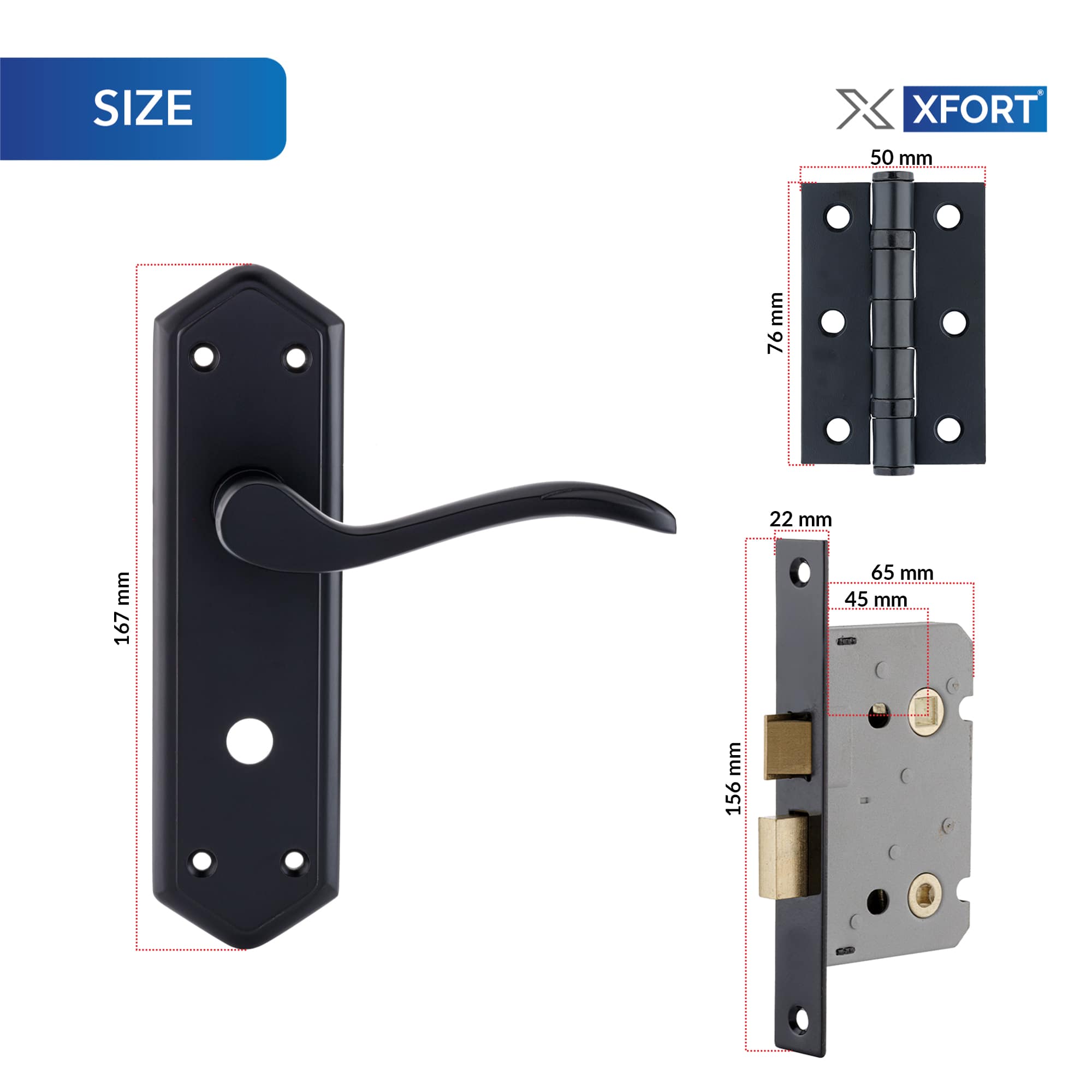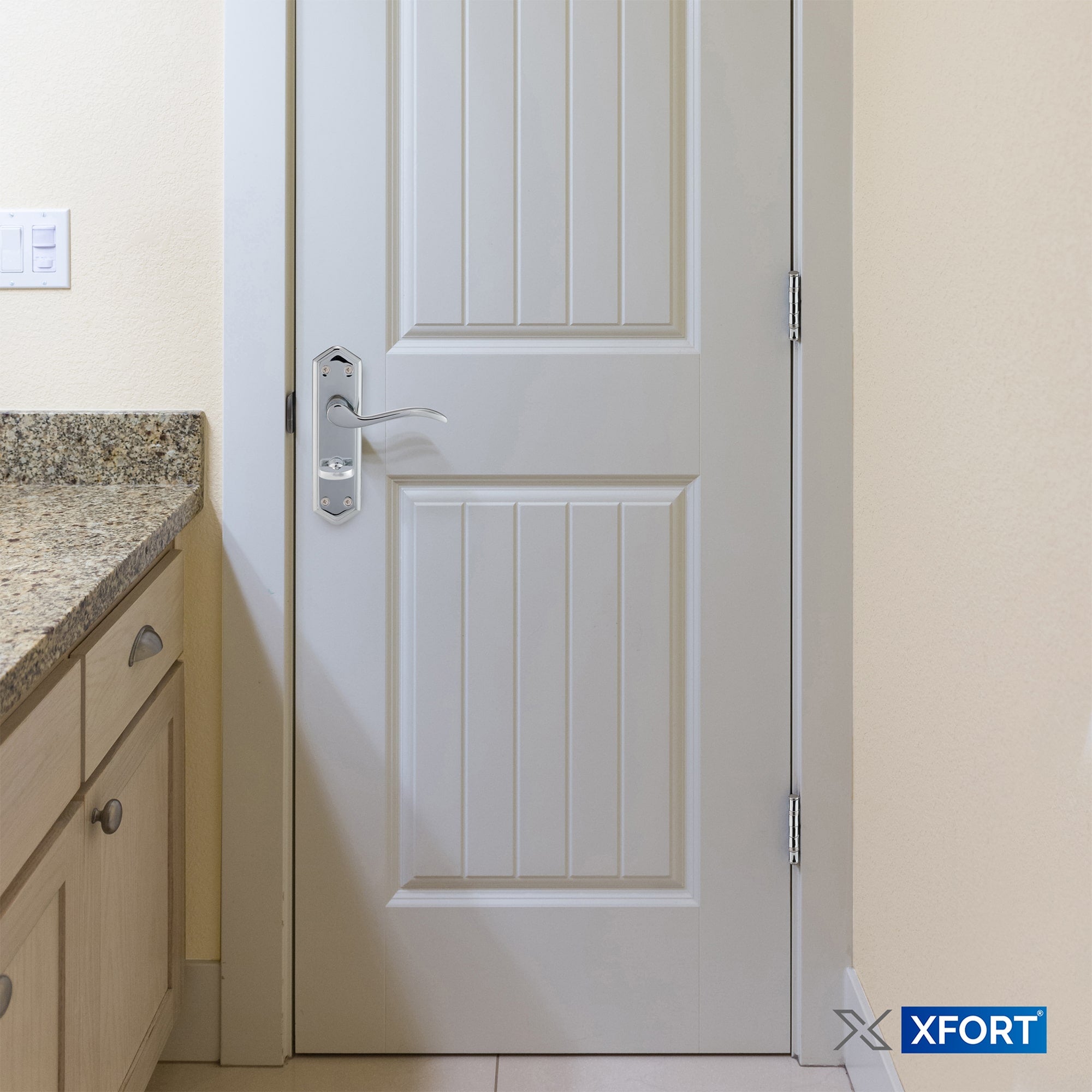 SET COMPLETO: questo pacchetto completo di porte include le maniglie per il bagno London Suite, una serratura per il bagno da 65 mm e una coppia di cerniere con cuscinetti a sfera da 75 mm (3”).