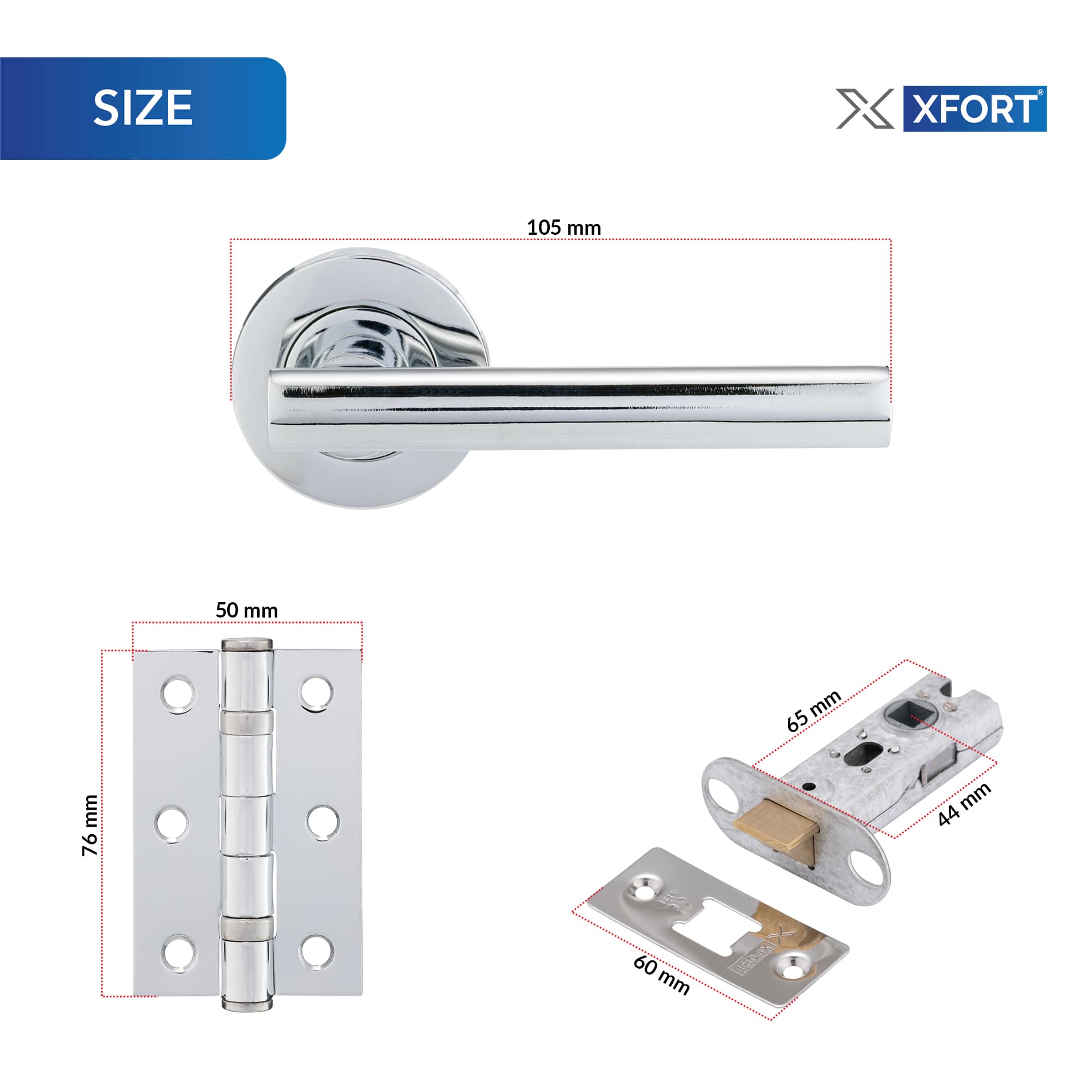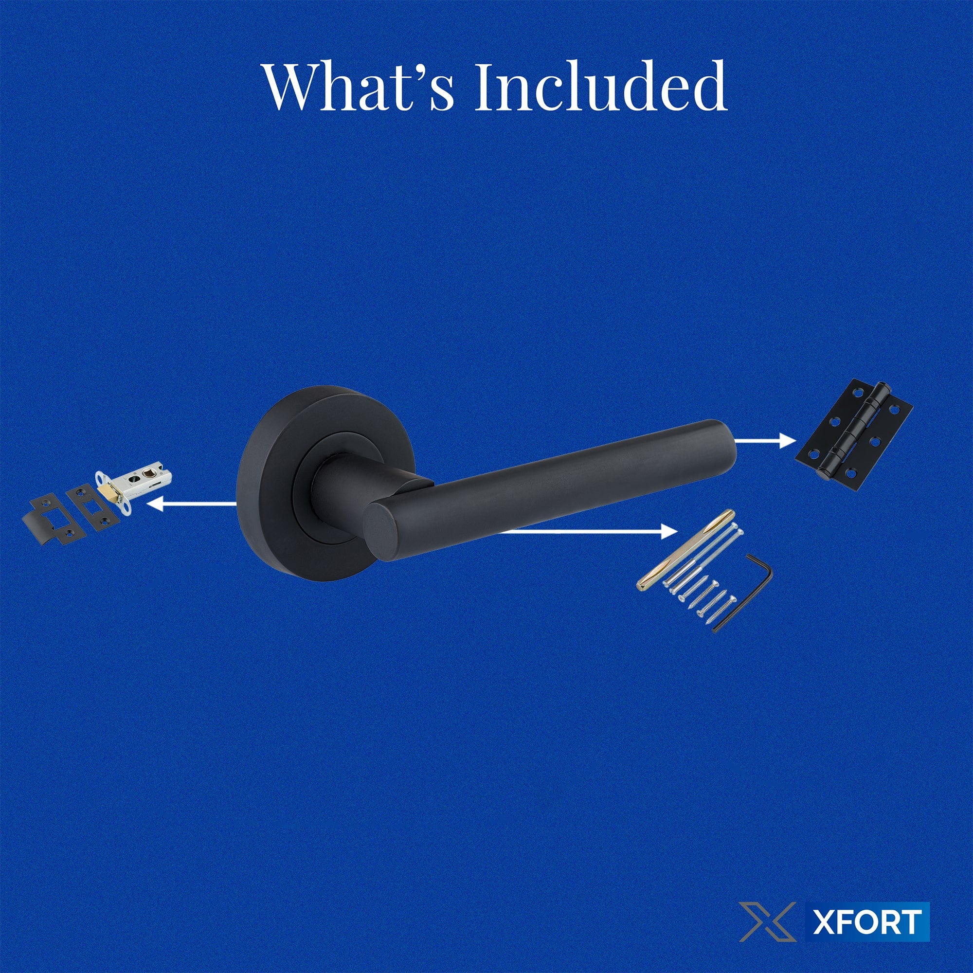 SET COMPLETO: questo pacchetto completo per porte include la leva Liberty sulle maniglie delle porte a rosetta, una serratura tubolare da 65 mm e una coppia di cerniere con cuscinetti a sfera da 75 mm (3”).